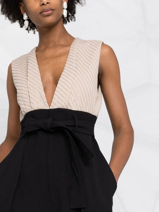 Brunello Cucinelli Two-Tone Sleeveless V-Neck Jumpsuit