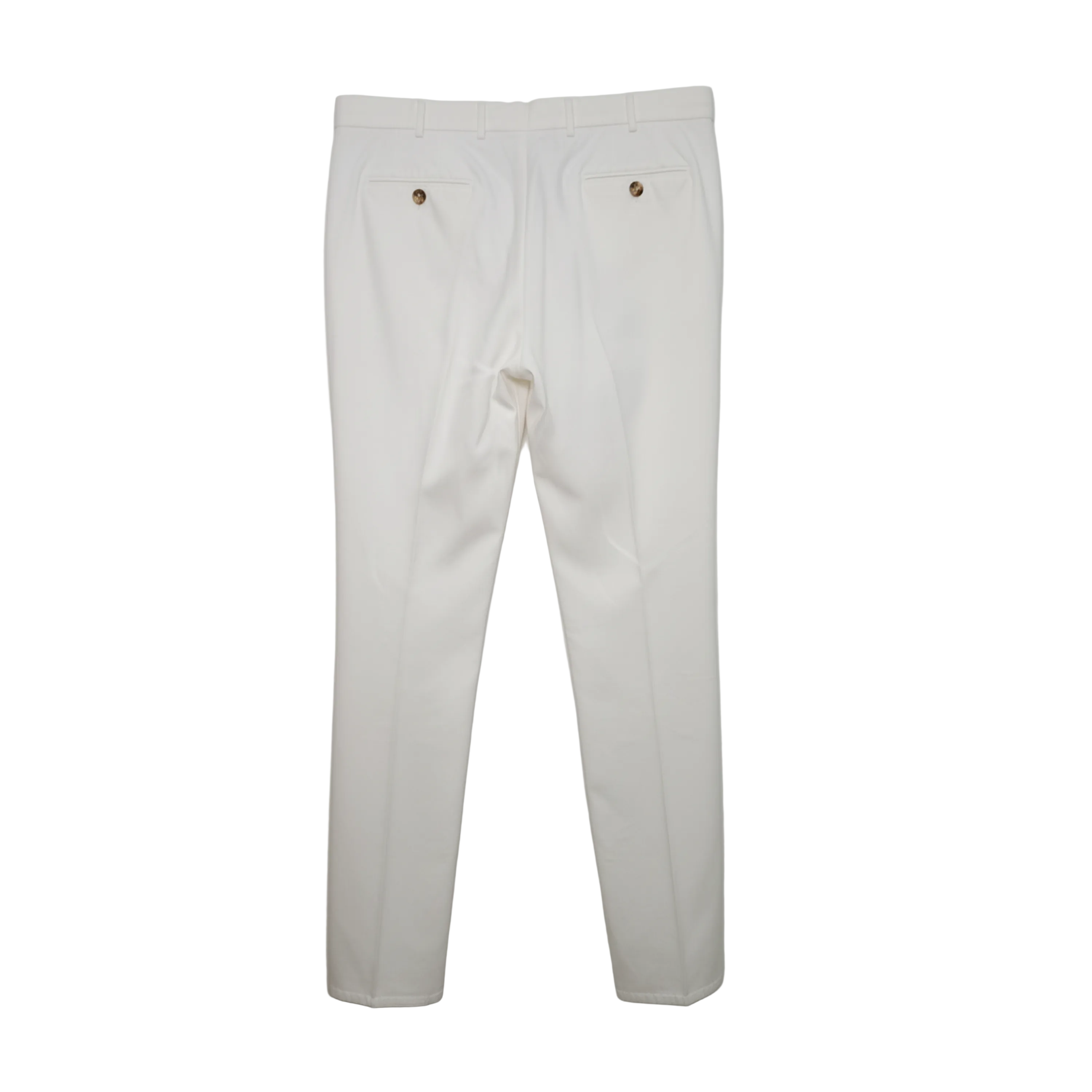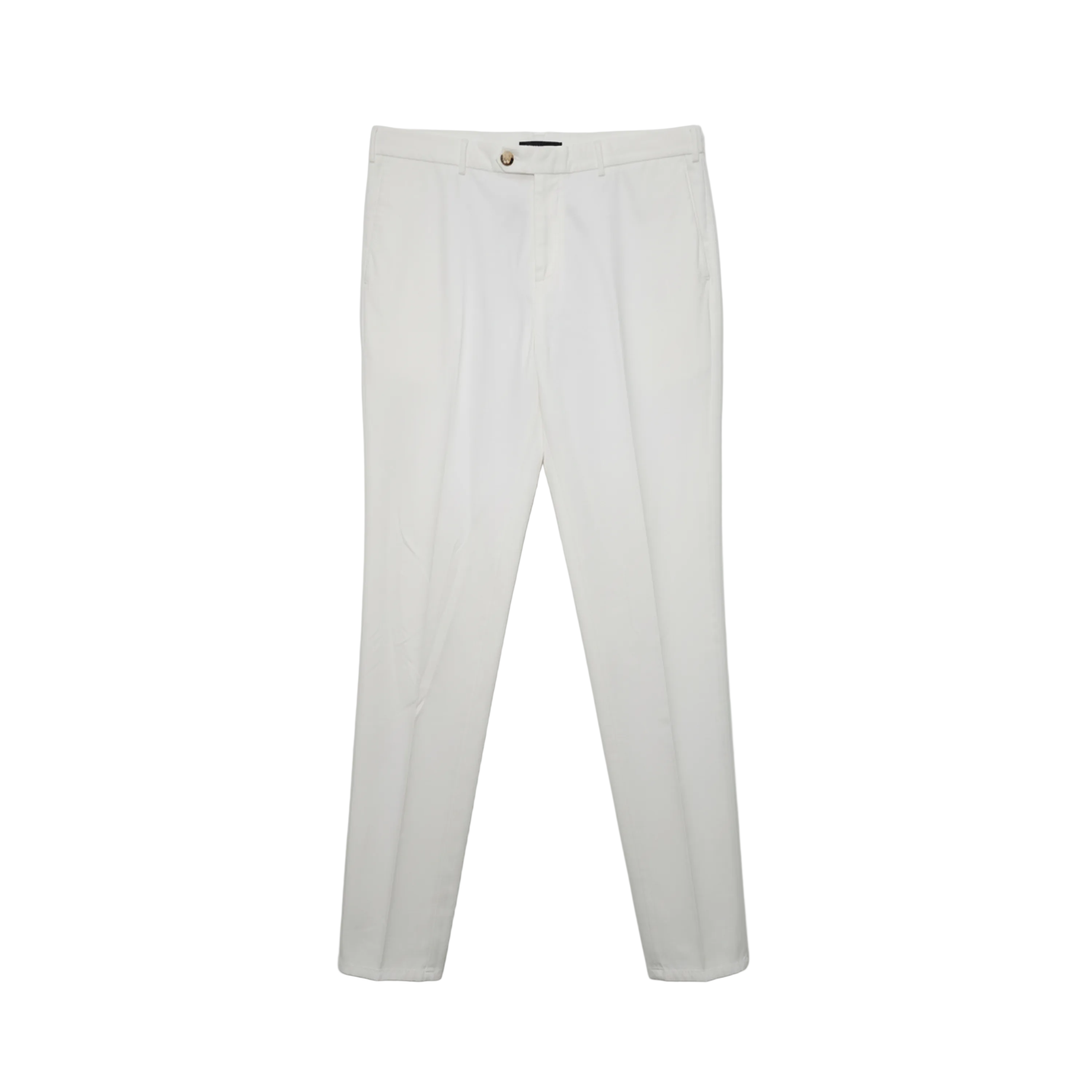 These Brunello Cucinelli trousers are crafted from crisp white cotton, offering a refined and versatile foundation for any sophisticated ensemble. They feature a classic tailored cut with a single button and zip fly closure, complete with belt loops for a polished finish.