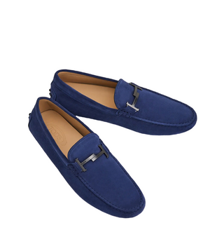 Tods Suede Gommino Driving Shoes with Metal Buckle in Galaxy Blue