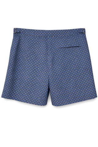 Brunello Cucinelli Mens Swim Patterned Shorts in Navy With Side Adjusters