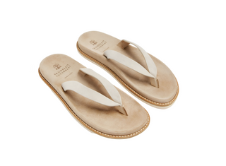 Brunello Cucinelli Mens Suede Flip Flops In Limestone