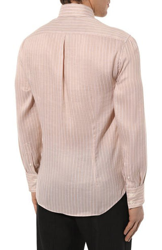 Brunello Cucinelli Linen Striped Button-Up Shirt in Beige