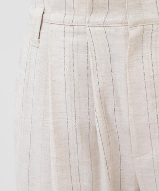 Brunello Cucinelli Linen Blend Pinstriped Pleated Cuffed Trousers