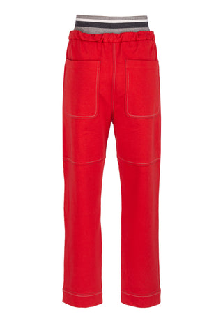 Brunello Cucinelli Cotton-Blend Contrast Stitch Drawstring Joggers Red
