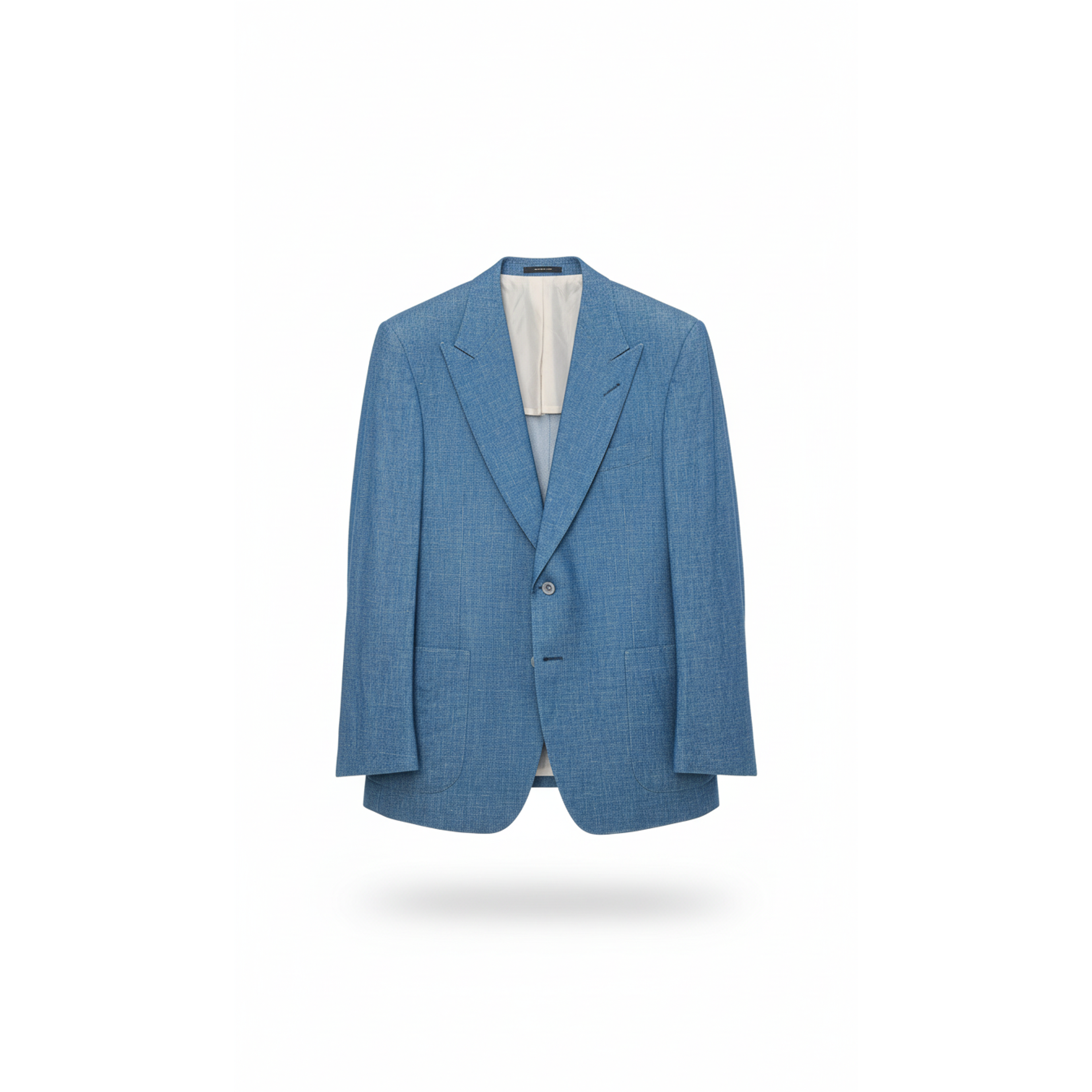 This sophisticated men's blazer is crafted from a luxurious, textured linen-silk blend, offering a refined yet relaxed aesthetic. It features a classic two-button closure, notched lapels, and practical patch pockets, making it an ideal choice for elevated casual or smart-casual ensembles.