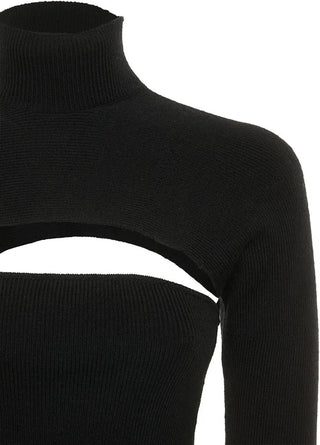 Tom Ford Wool Ribbed Chest Cut-Out Turtleneck Top