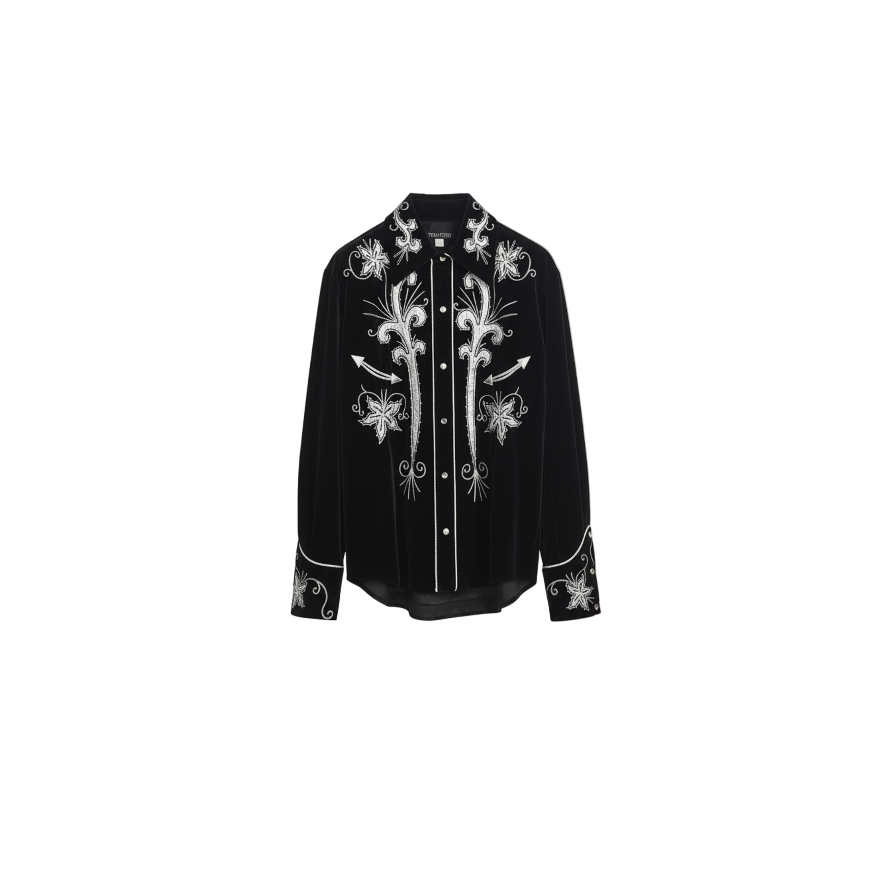 Tom Ford Velvet Silver Embroidered Western Shirt