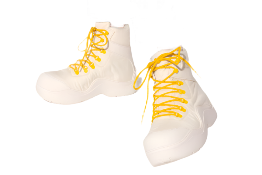 Crafted from durable technical fabric, these high-top boots blend a robust design with a modern streetwear aesthetic. They feature a striking chunky platform sole and are accented with vibrant yellow D-ring eyelets and coordinating rope laces, creating a distinctive and contemporary look.